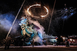 Le spectacle inaugural du Varan de Voyage réunira, pour la première fois à Calais, trois créatures issues de l’imaginaire de François Delaroziere. Le Dragon de Calais, majestueux gardien de 72 tonnes, arpente depuis 2019 le front de mer avec ses ailes de toile et son souffle de feu. À ses côtés surgira le Varan de Voyage, long de près de 15 mètres, plus agile et plus discret, conçu pour se faufiler dans les ruelles et porter le récit au cœur des quartiers. Enfin, viendra Lilith, la Gardienne des Ténèbres, une figure sculpturale aux allures énigmatiques, dont la présence marque un tournant dramatique dans la mythologie du bestiaire. Ensemble, ils composeront un trio spectaculaire et symbolique, mêlant puissance, mouvement et mystère, pour écrire sous les yeux des spectateurs une fable urbaine vivante, à l’échelle de toute la ville.